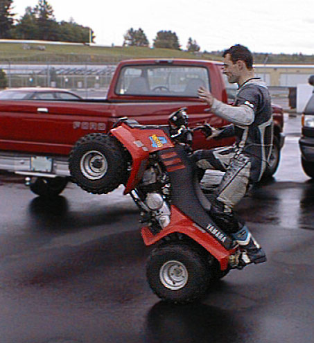 "Now Adam, the front wheel is supposed to be in the air, like this."