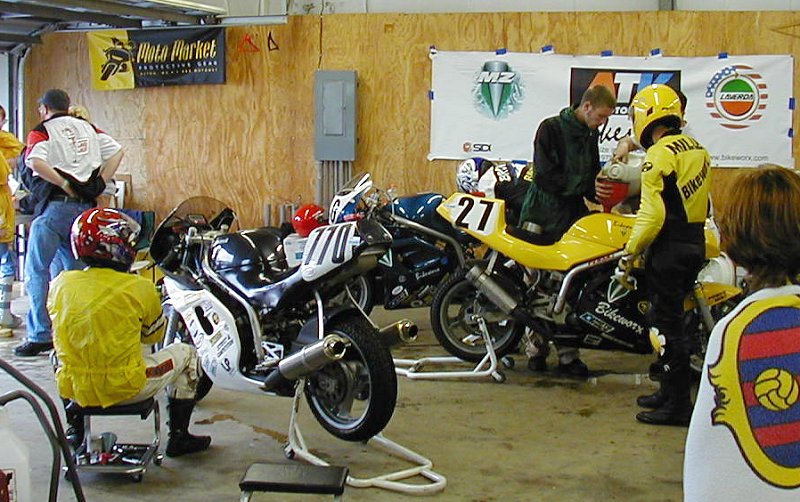 Repairs complete, Bruce (seated) and Galen wait for the start of the race.