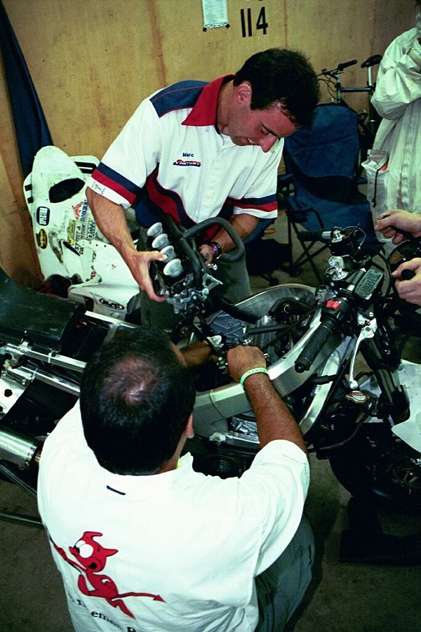 Patrick and Paul work on installing/removing the F4's carbs for the n-teenth time.